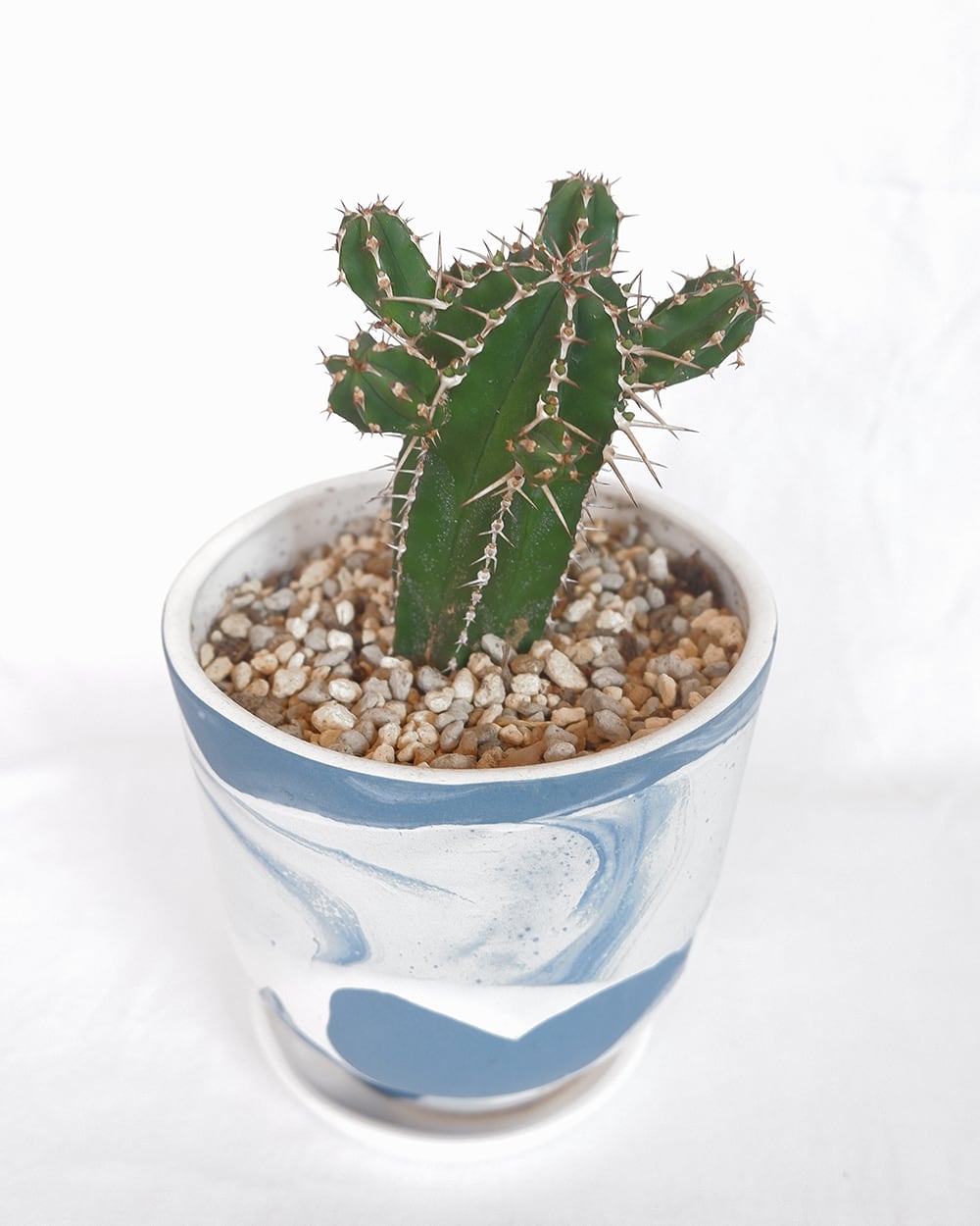 【 詳細 】サボテンのような見た目ですが、柱状に伸びる茎と白いトゲが特徴のユーフォルビアの一種